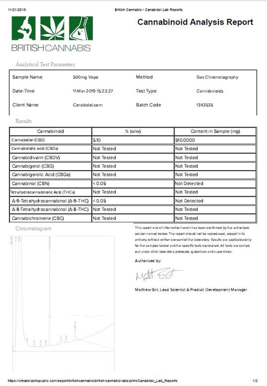 CBD by British Cannabis 500mg CBD Vape E-liquid 10ml