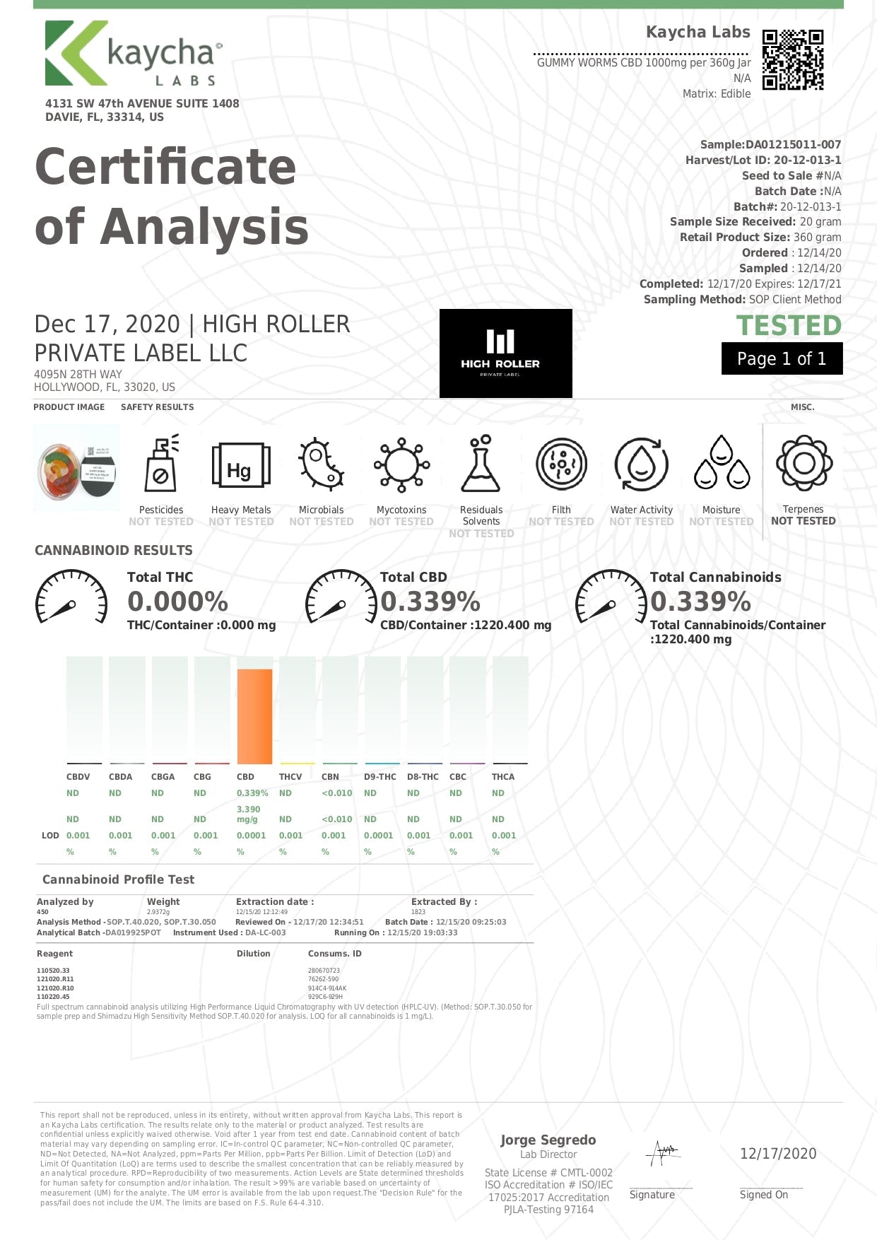 Corn Syrup (From Corn), Sugar (From Beets), Water, Gelatin, Lactic Acid, Citric Acid, Natural and Artificial Flavors, Fumaric Acid, Pectin (Derived From Fruits), Titanium Dioxide (Color), FD&C Yellow #5, FD&C Red #40, FD&C Yellow #6, FD&C Blue #1, HEMP EXTRACT CANNABIDIOL (CBD), COCONUT OIL.