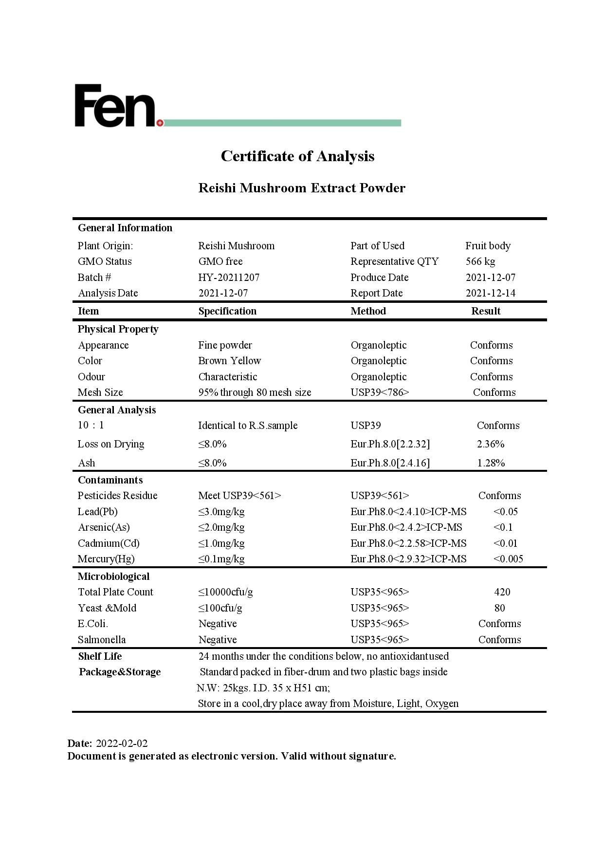 Ingredients: Reishi Mushroom Extract, (30% Polysaccharides).